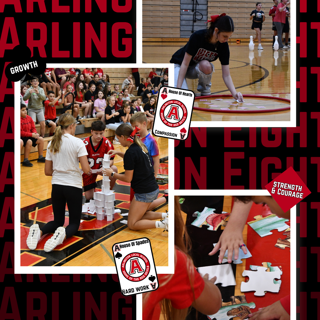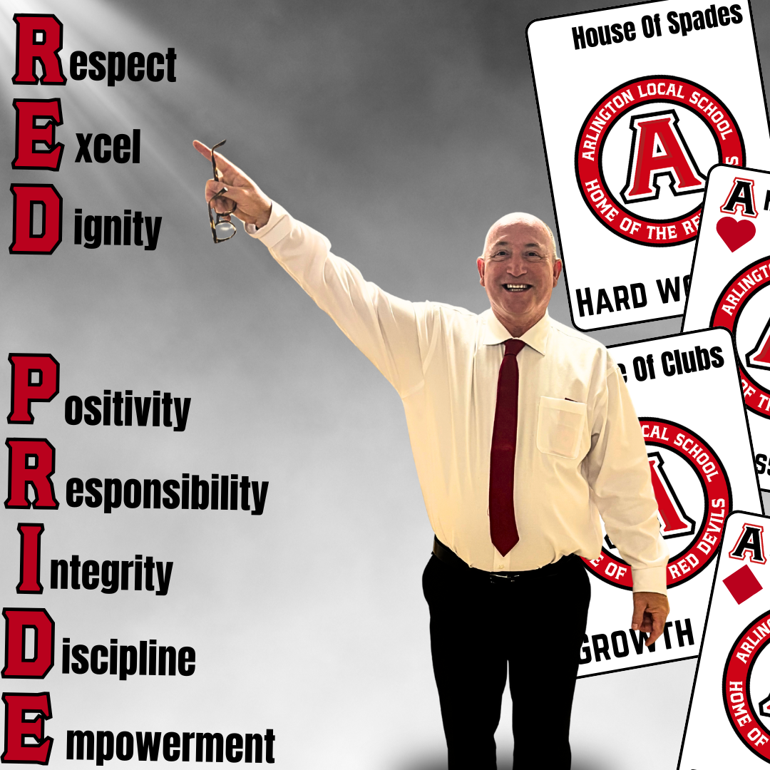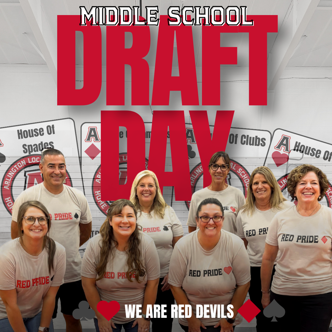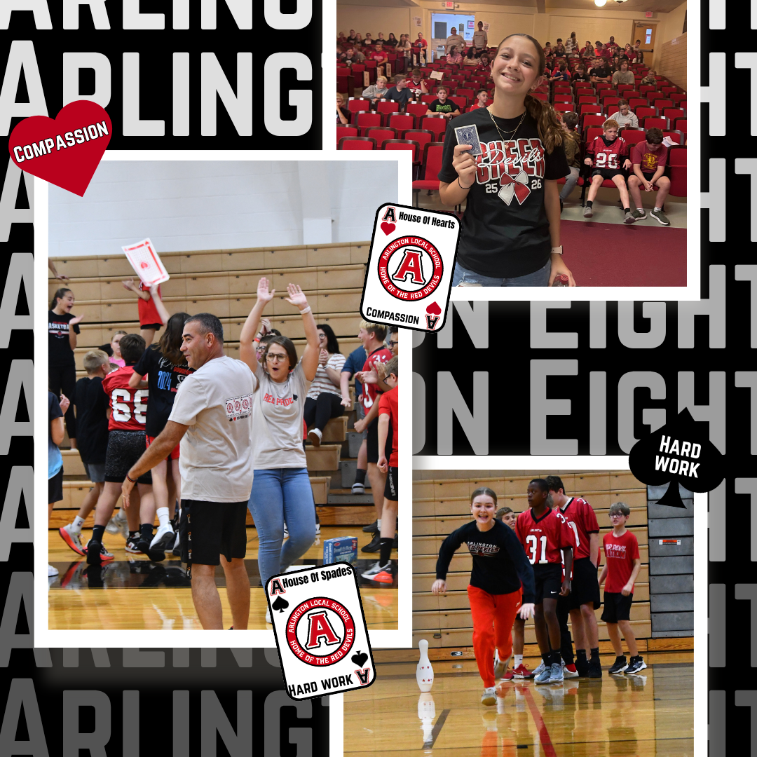 For the draft, each middle school student was chosen randomly to be a part of one of the four houses (Hearts, Diamonds, Spades, and Clubs). These houses are apart of a point system, where throughout the year they will compete for the most points, earned by following the “Arlington Eight”: RED PRIDE, Respect, Excel, Dignity, Positivity, Responsibility, Integrity, Discipline, and Empowerment. At the end of each grading period, the house with the most points earns a prize, and then the points reset for next quarter.