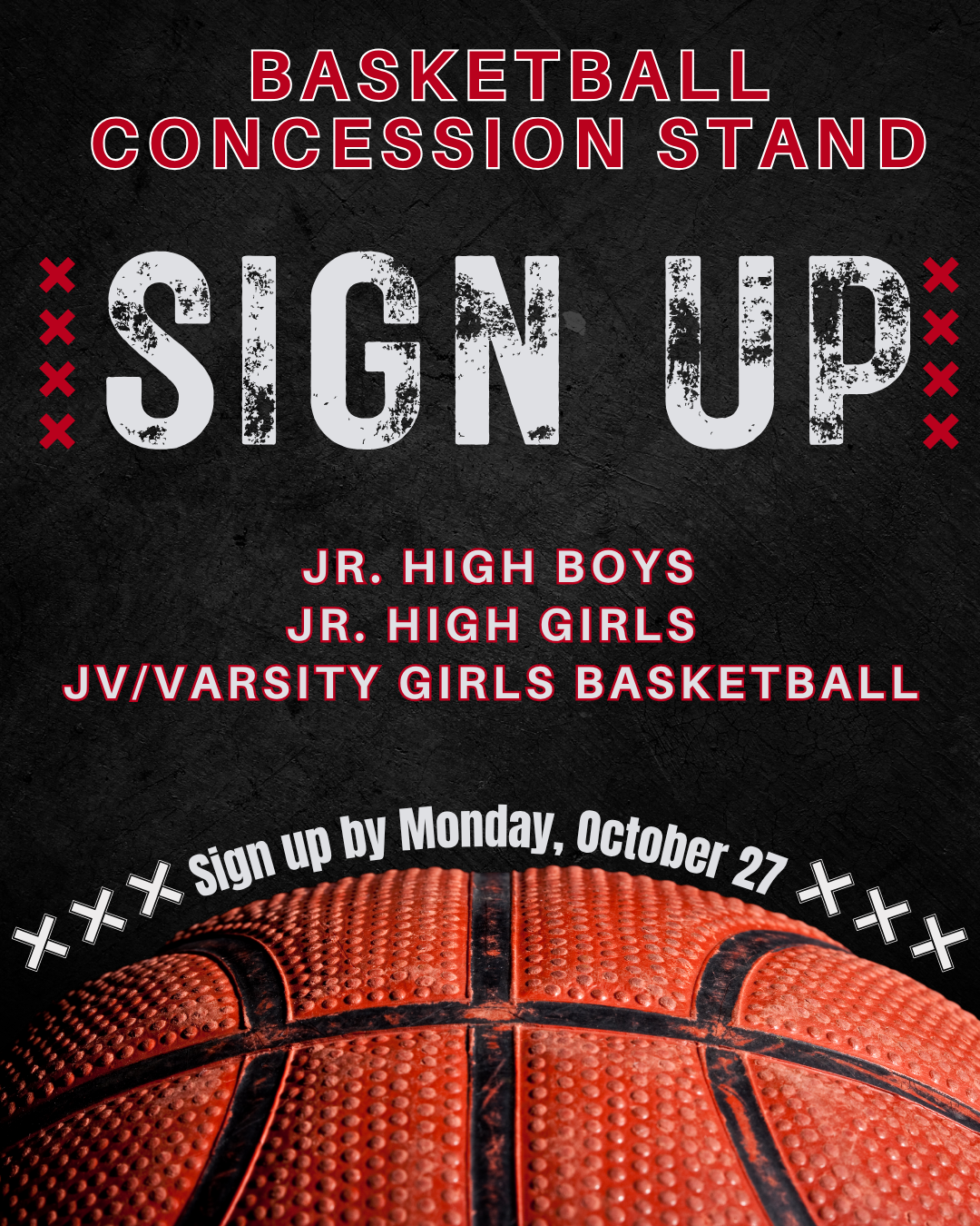 Attention band and choir parents! Basketball concession stand sign ups are live! Sign ups close Monday, October 27.