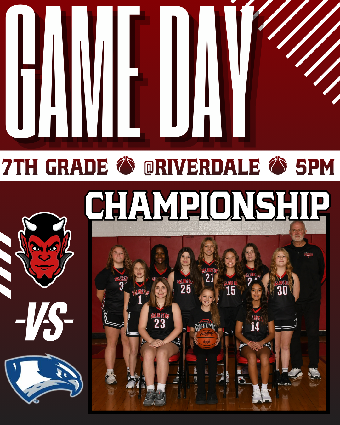 The Junior High Girls' Basketball Teams both advanced to the BVC championship game scheduled for Wednesday, February 4 at Riverdale High School. The 7th grade plays Riverdale at 5PM and the 8th grade plays LB at 6:30PM. Good luck, ladies!