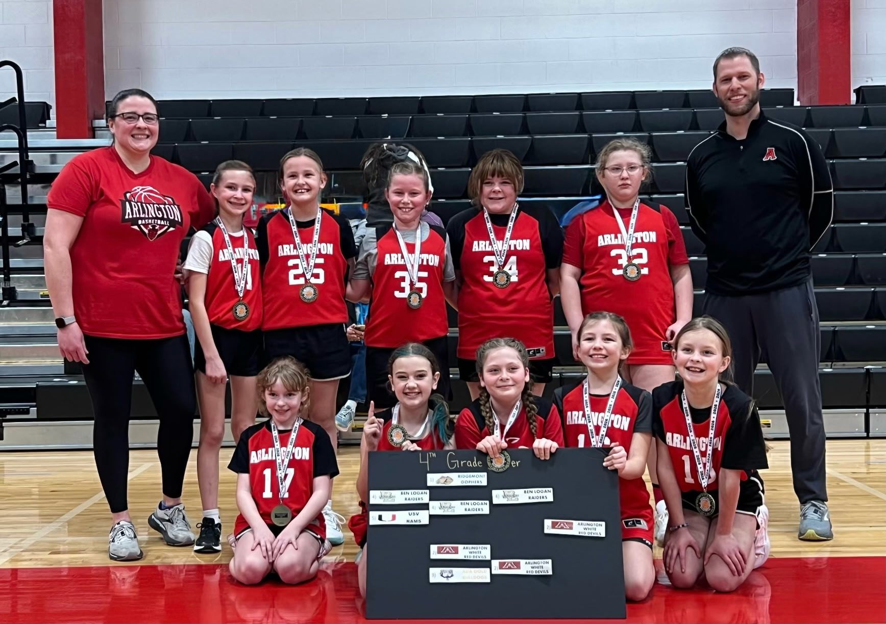 The 4th grade finished tournament play in the Kenton Basketball League. Arlington White (pictured left) won the silver bracket while Arlington Black (pictured right) played in the first round of the gold bracket.