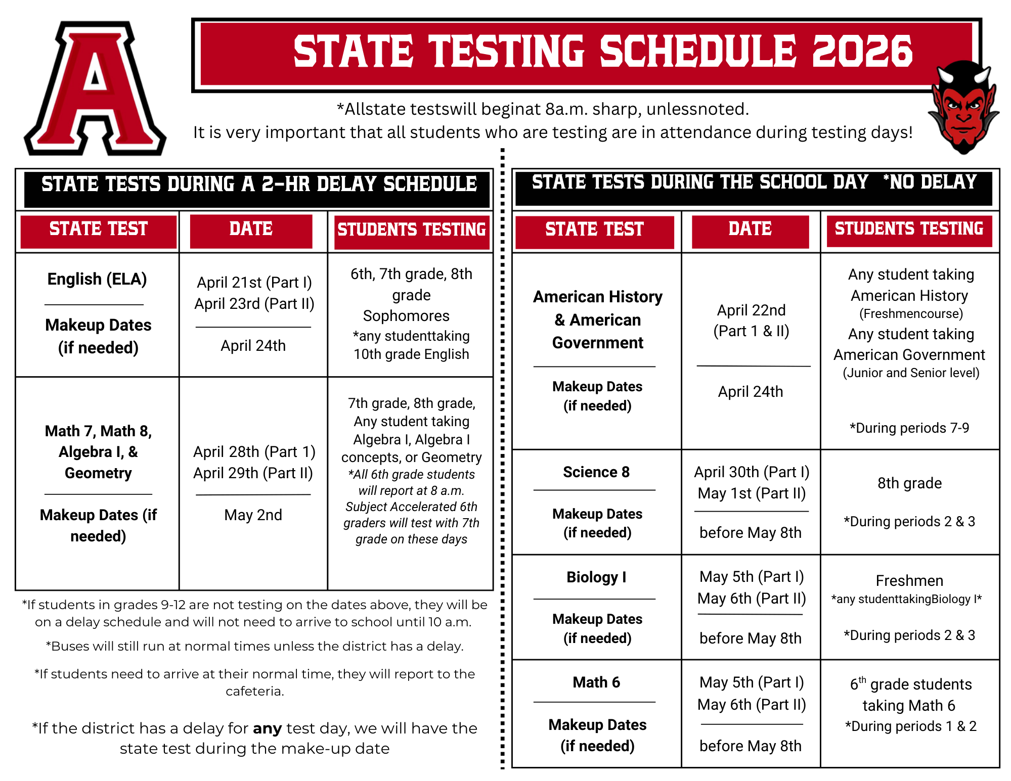 State Testing Schedule